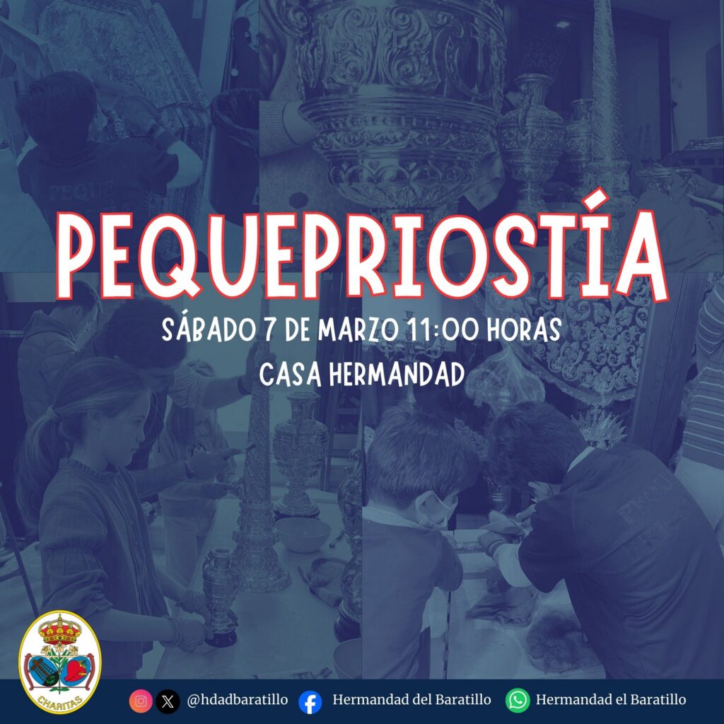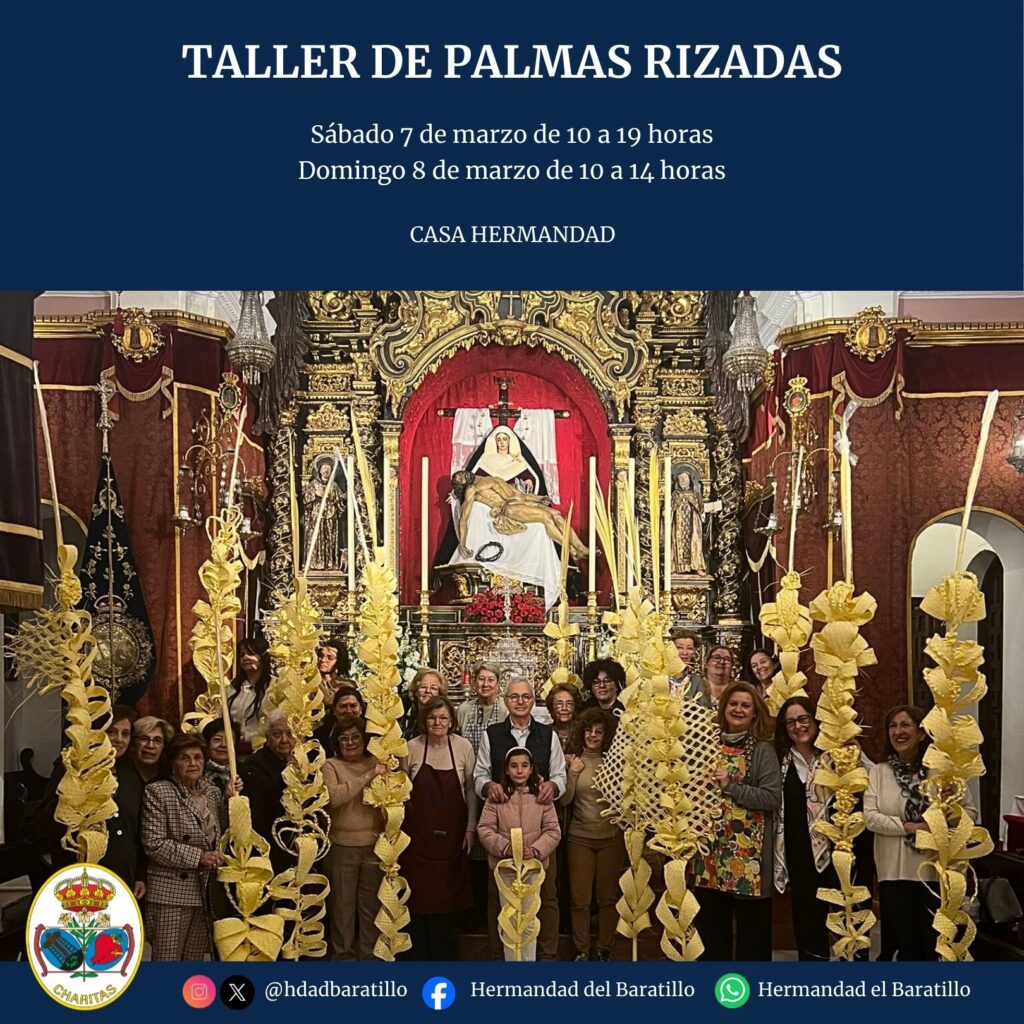 Con la próxima llegada de la Semana Santa, la Hermandad del Baratillo organizará nuevamente el Taller de Palmas Rizadas, siendo esta la IV Edición. Como en años anteriores, con este Taller se tratará de perfeccionar la técnica del rizado de la palma blanca en un ambiente de fraternal convivencia entre todos los participantes. Se desarrollará […]
