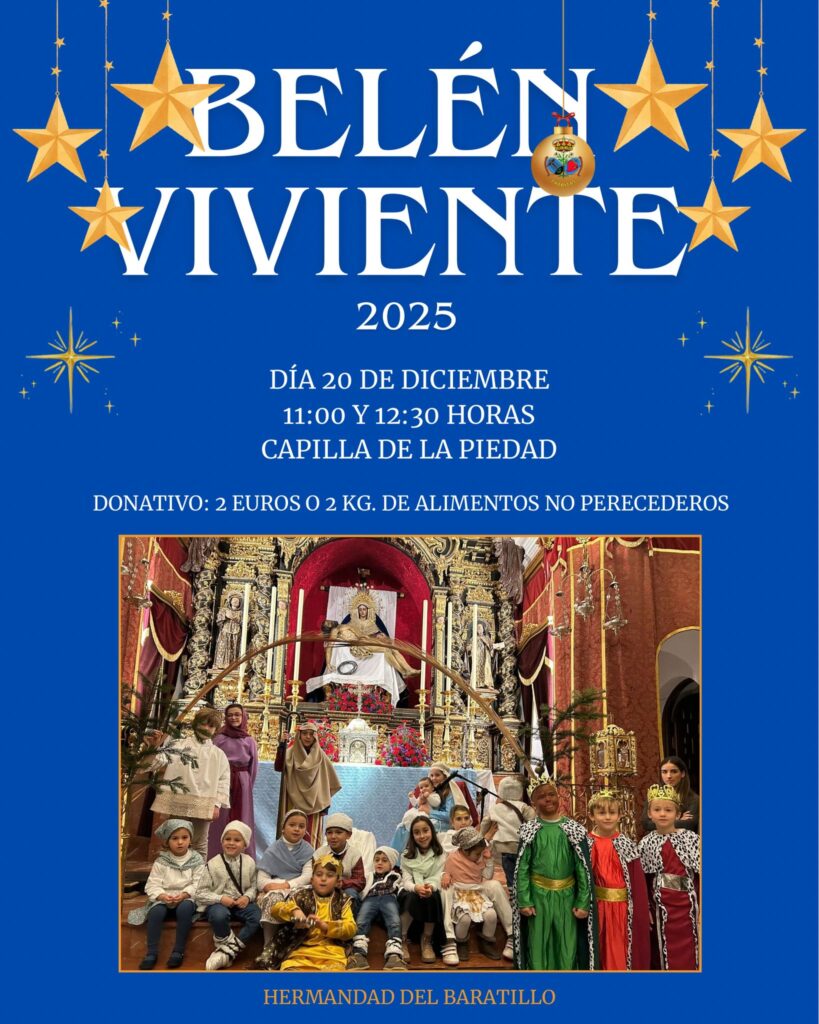 El sábado 20 de diciembre en nuestra Capilla tendrá lugar la representación del Belén viviente baratillero con dos sesiones, la primera a las 11:00 horas y la segunda a las 12:30 horas.