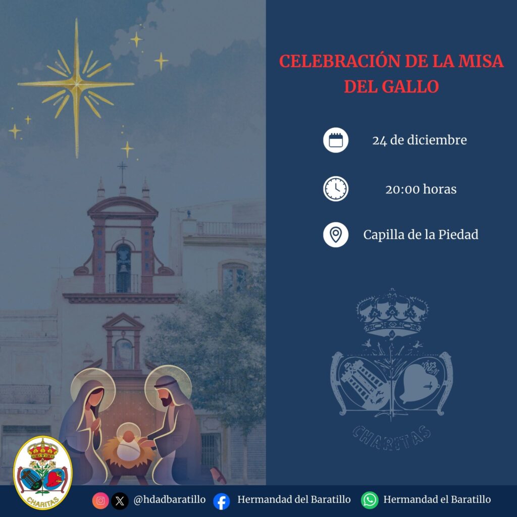 Un año más, el 24 de diciembre a las 20:00 horas celebraremos en la Capilla de la Piedad la Misa del Gallo, que será presidida por nuestro Director Espiritual, N.H. Rvdo. Sr. D. Andrés Ybarra Satrústegui.